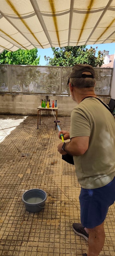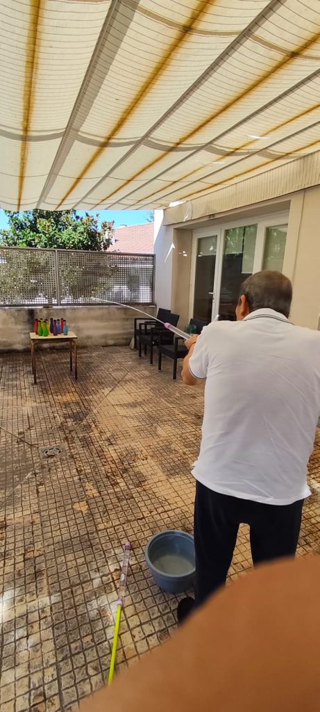 En estos días de sofocante calor siempre hay tiempo en la sede para un refrescón. Hemos diseñado varios juegos de agua. De esta manera, además de hacer ejercicio, estimulamos la atención y la concentración.